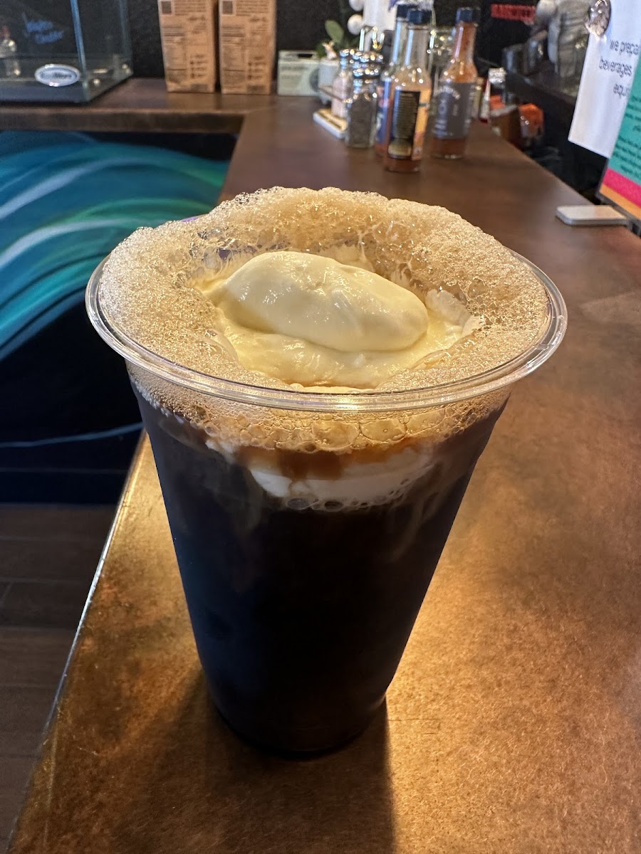 Extra strength, cold brew Toppes Thick with homemade vanilla macadamia nut cream.
