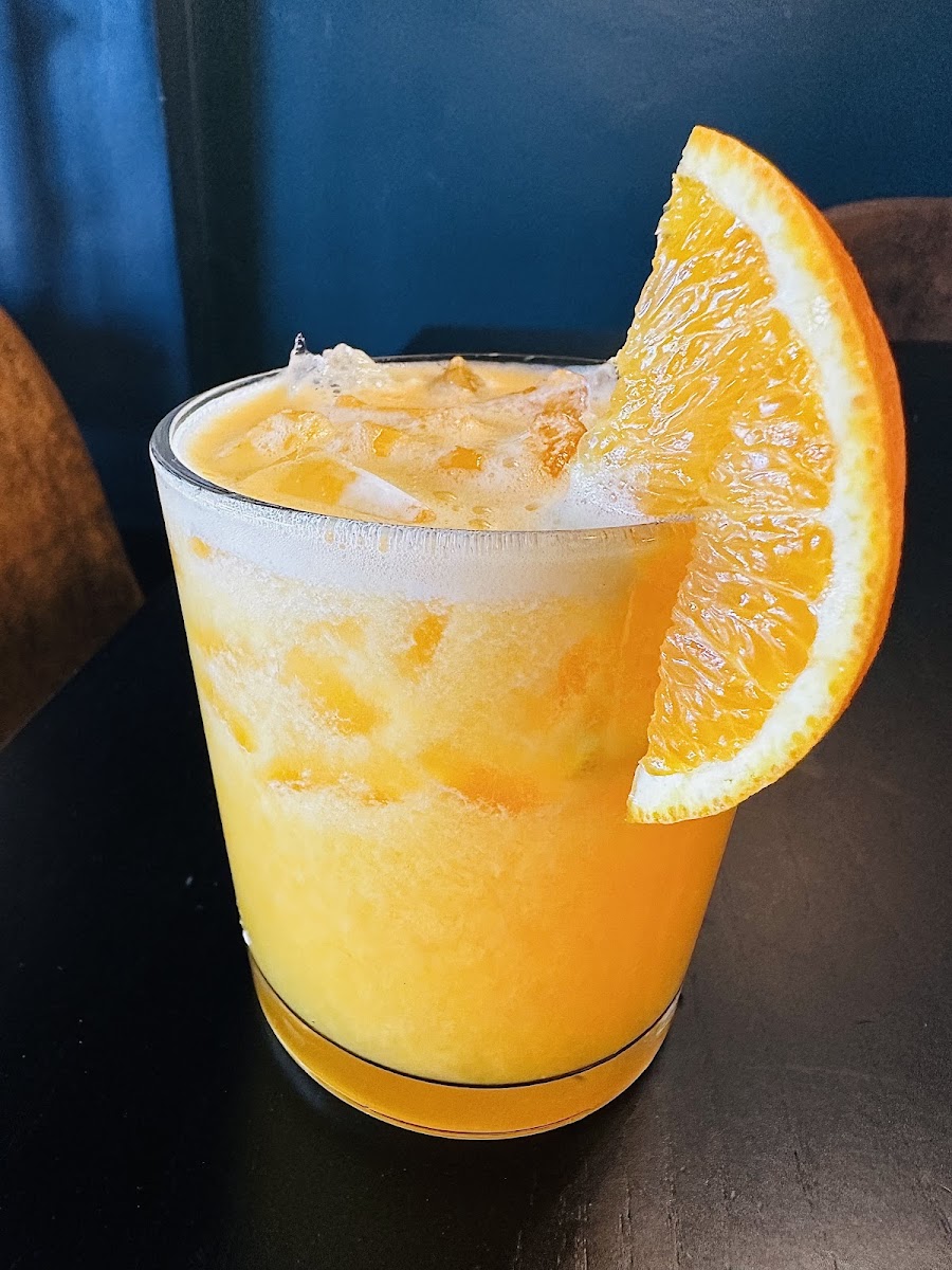 Fresh meat, lemonade, cold pressed orange juice, local hibiscus syrup, and a candied orange